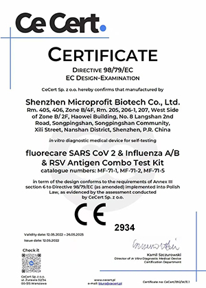 5月12日,由深圳市迈科龙生物技术有限公司自主研发,可用于家庭自测、集合新型冠状病毒(SARS-CoV-2)、甲型流感病毒(Flu A)、乙型流感病毒(Flu B)和呼吸道合胞病毒(RSV)的抗原四联检测试剂产品已成功获得欧盟家庭自测CE认证。