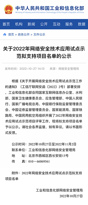 近日,迈科龙“大数据安全管治与交易计费管理系统”获评工信部“2022年网络安全技术应用试点示范项目”。