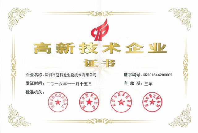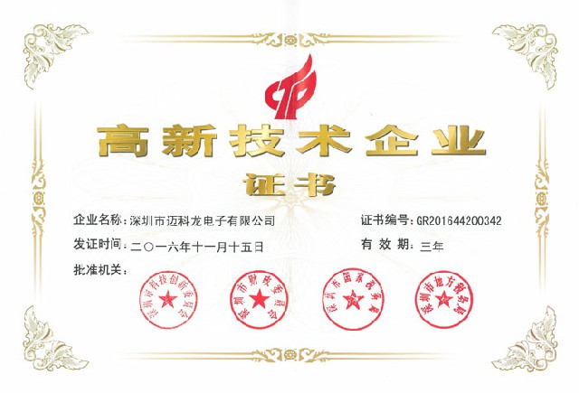 2017新年伊始,迈科龙集团传来喜讯。日前,集团下属两家子公司“深圳市迈科龙电子有限公司”、“深圳市迈科龙生物技术有限公司”正式收到由深圳市科技创新委员会、深圳市财政委员会、深圳市国家税务局、深圳市地方税务局联合颁发的“国家高新技术企业”证书。