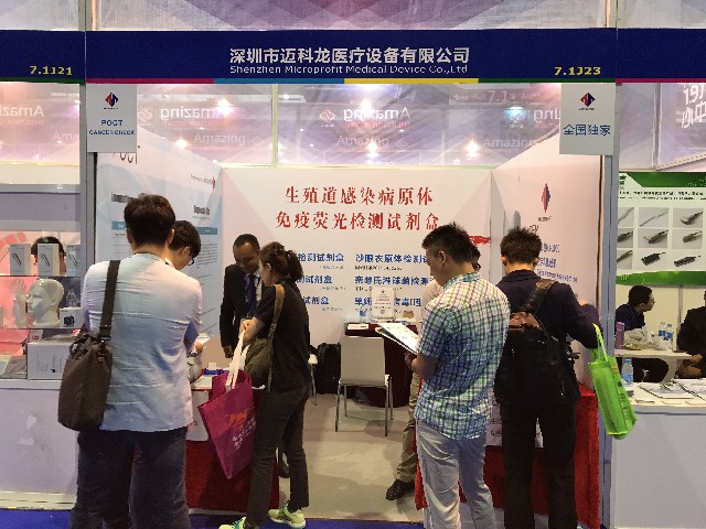 展会期间,迈科龙展出的生殖道感染病原体免疫荧光试剂盒(全国独家)、POCT-免疫荧光定量检测平台和迈科龙MX-1000数字乳腺X光机吸引了来自世界各国的医疗专业人士驻足参观和深入了解,并获得一致认可。